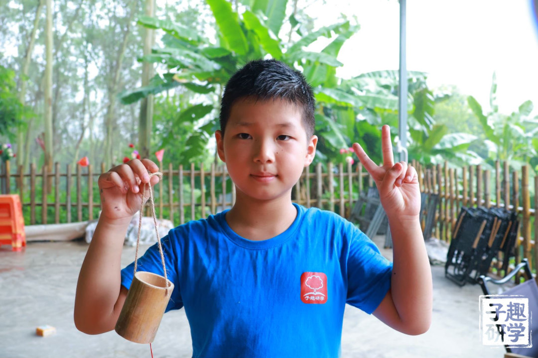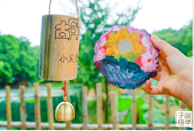 一个个充满童趣的竹风铃就在同学们手中随着轻柔的微风叮当作响,风铃仿佛风的使者带领同学们一起探索大自然的美妙。