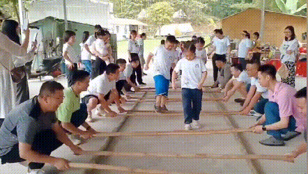 快来和孩子们来一场竹竿舞吧!家长们两人手持2根竹竿为一组,由6人持3组竹竿在两根平行的大竹竿上击打出清脆整齐的节拍,宝贝们依次在竹竿的开合间迈动脚步,穿梭在竹竿阵中...真得太好玩啦!