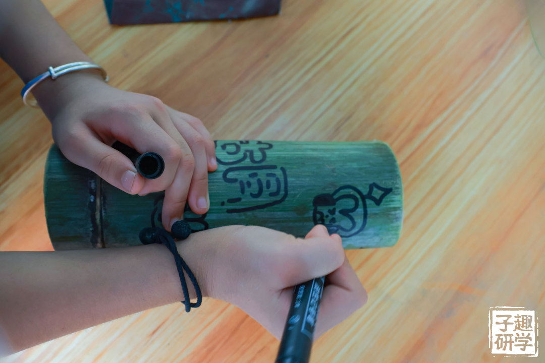 带孩子学习中国的传统竹文化以匠心巧手,锯竹、打磨,与孩子一起感受竹子的劲节、虚空和柔韧削竹为弓箭,切竹为箭筒~