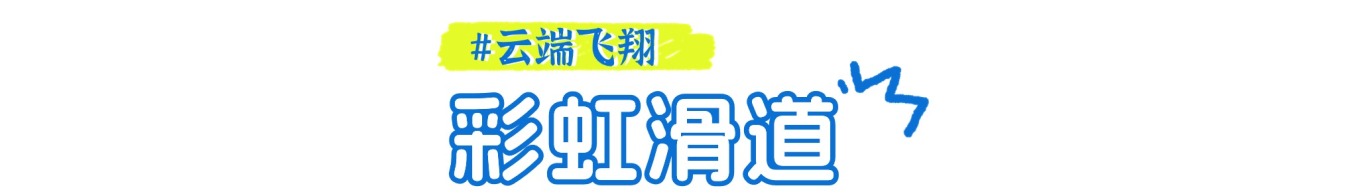 阳光洒下来,七彩的颜色更显缤纷,从长长的滑道上滑下来,可以看到远处成片的绿色,体验在七彩云端⻜翔的感觉。⽆论⼤⼈⼩孩都抵挡不了的诱惑。