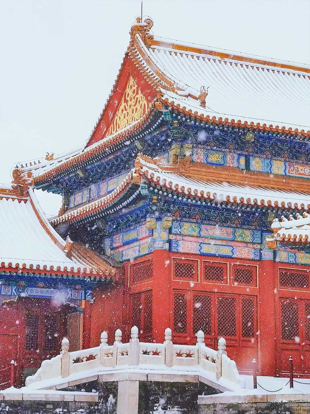 北京,故宫的红墙鎏金记录着五千年古今