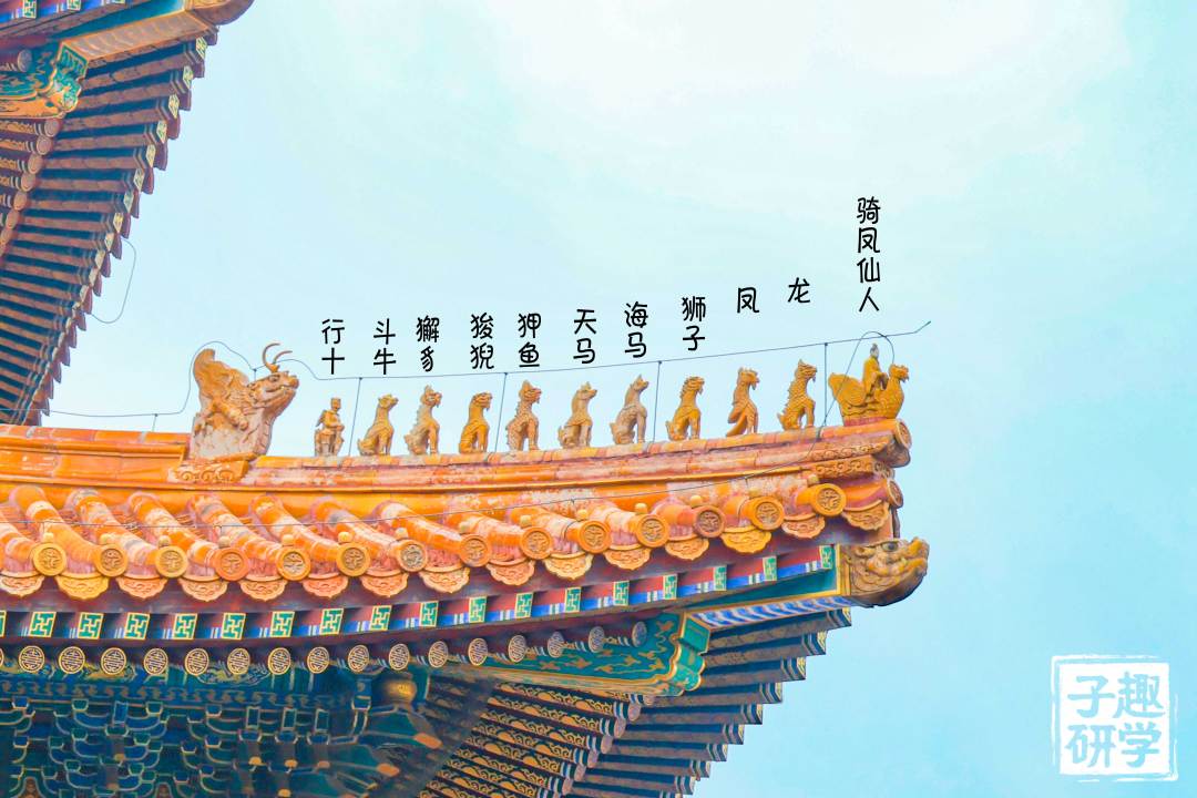 故宫建筑屋顶的脊上,大多都立着多多少少的小兽