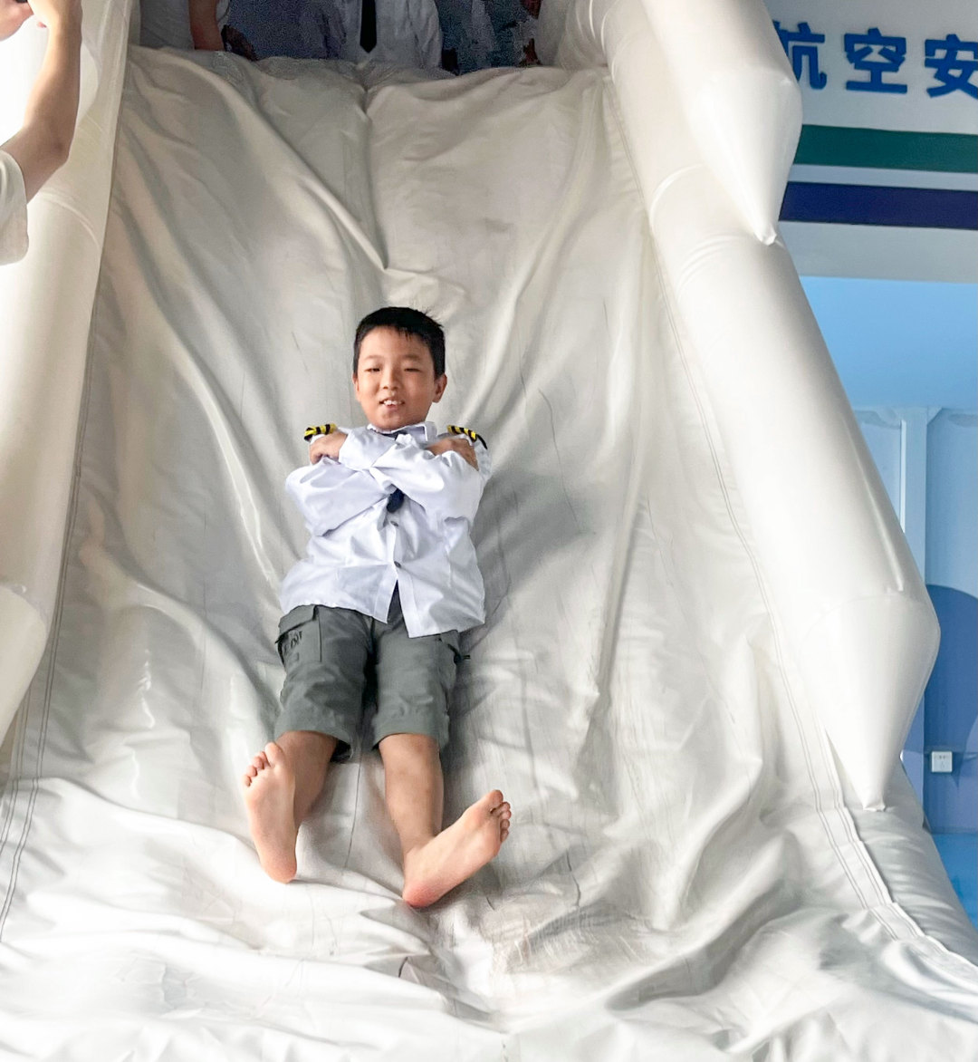 学习飞机紧急迫降如何使用救生衣和逃生滑梯、逃生注意事项和姿势,锻炼孩子们不畏艰险,勇敢坚毅的精神,同时提升孩子们应对危险的能力!