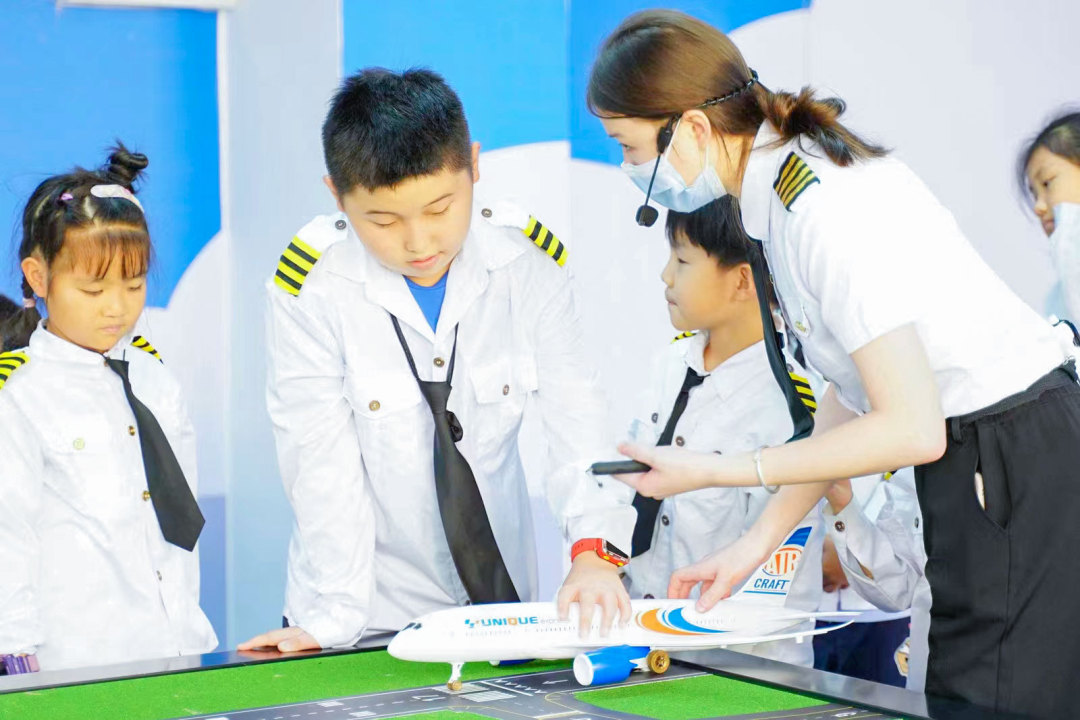 在我们这里孩子可以直接接触航空知识,体验飞行的乐趣、 感受航空科技的神奇和美好、了解航空文化。