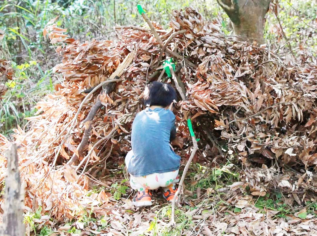 搭建庇护所需要的树干、树枝、竹竿、树叶、藤条等材料,大家一起去寻找收集起来吧