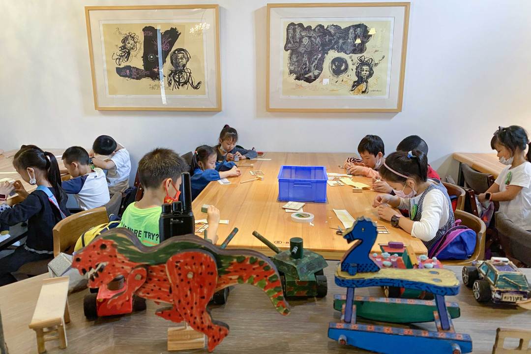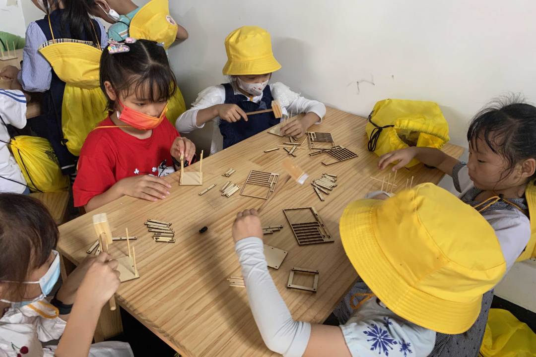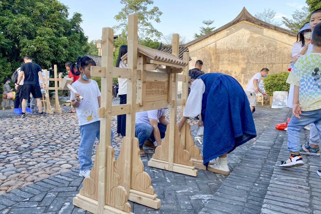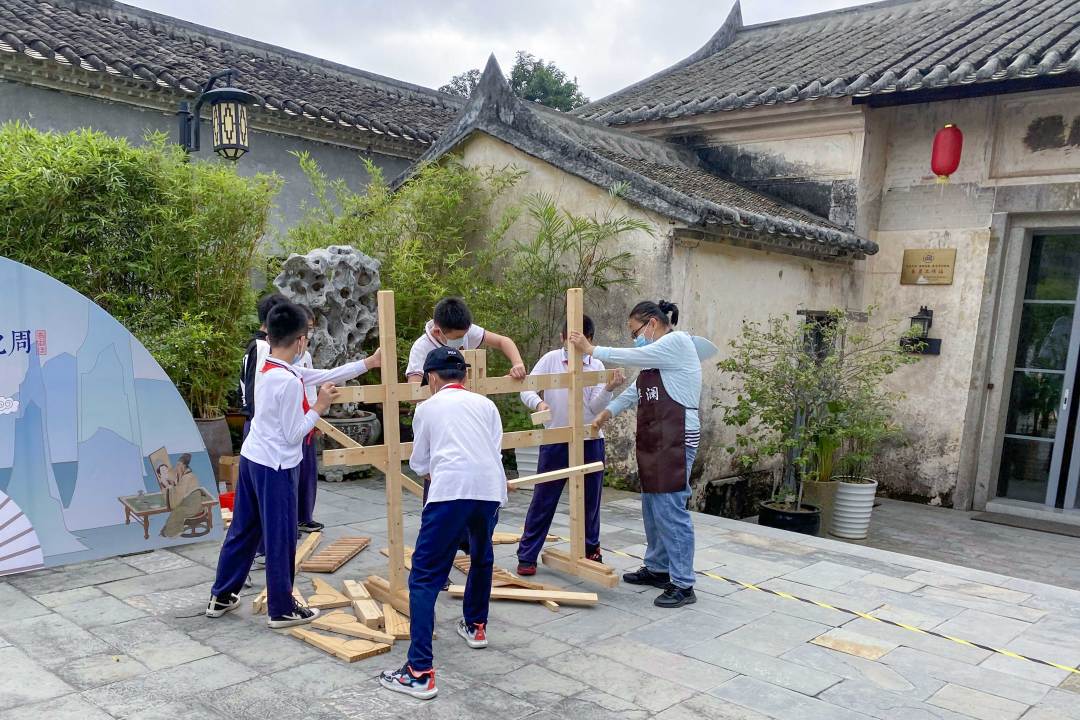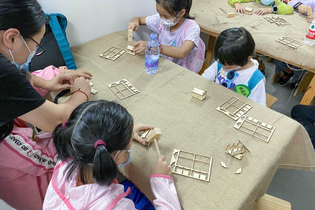 老师带领小建筑师们通过手工木作的方式共同还原一组版画村典型的建筑群组。
